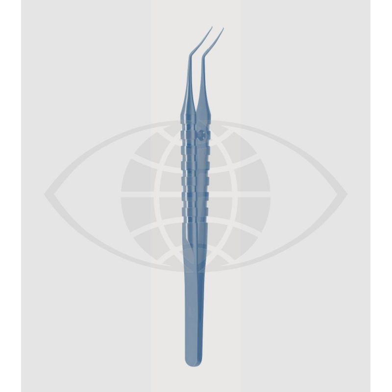 Capsulorhexis Forceps, angled, curved, round handle, Titanium